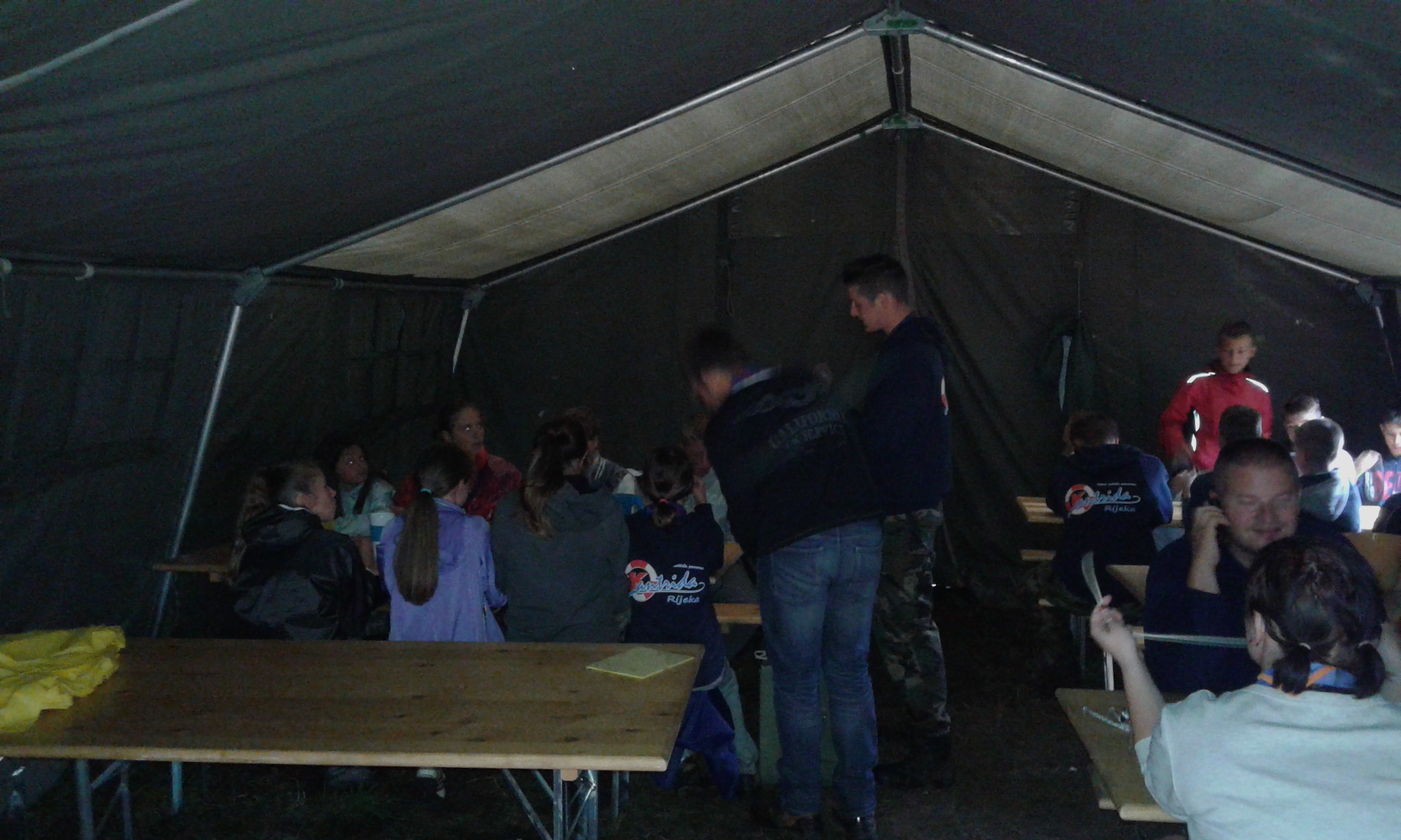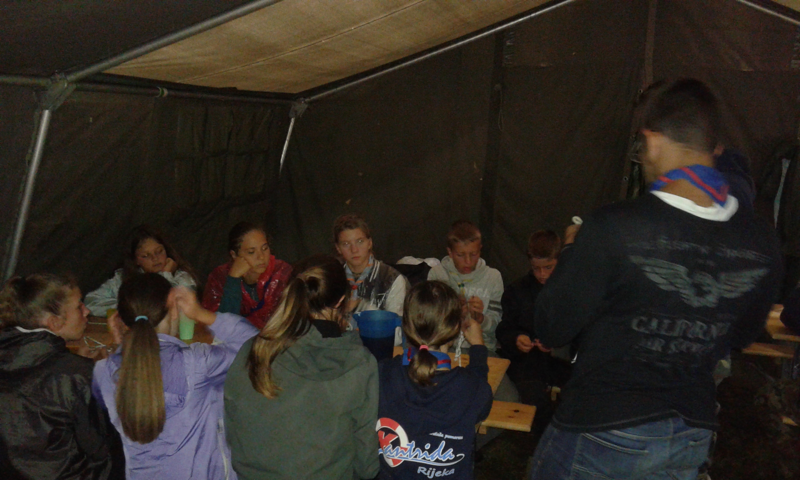 Kiša pada … malo smo mokri ali tako to mora biti :). Jučer smo imali napad na logor nažalost nismo obranili logor jer je obrana bila loše posložena … danas cijeli dan pada kiša malo smo mokri ali sve je OK, sve je pod kontrolom, aktivnosti se odvijaju (malo manje nego je planirano) vatra gori cijelo popodne pa se lagano sušimo, večeras je zadnje večer za poletarce koji su nama od ponedjeljka i sutra idu svojim kućama.